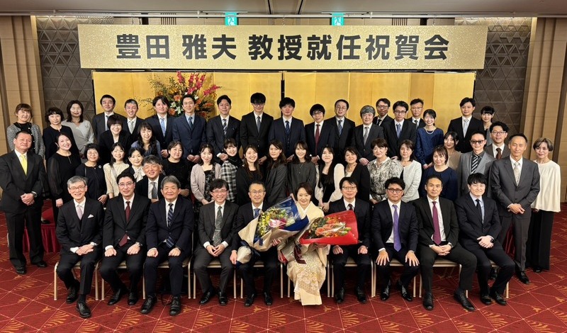 11月2日(日)に豊田 雅夫先生の教授就任祝賀会が開催されました。多くの方が集まり、温かい祝福の言葉が寄せられました。笑顔あふれる会となり、新教授の新たな門出を華やかに祝うひとときとなりました。